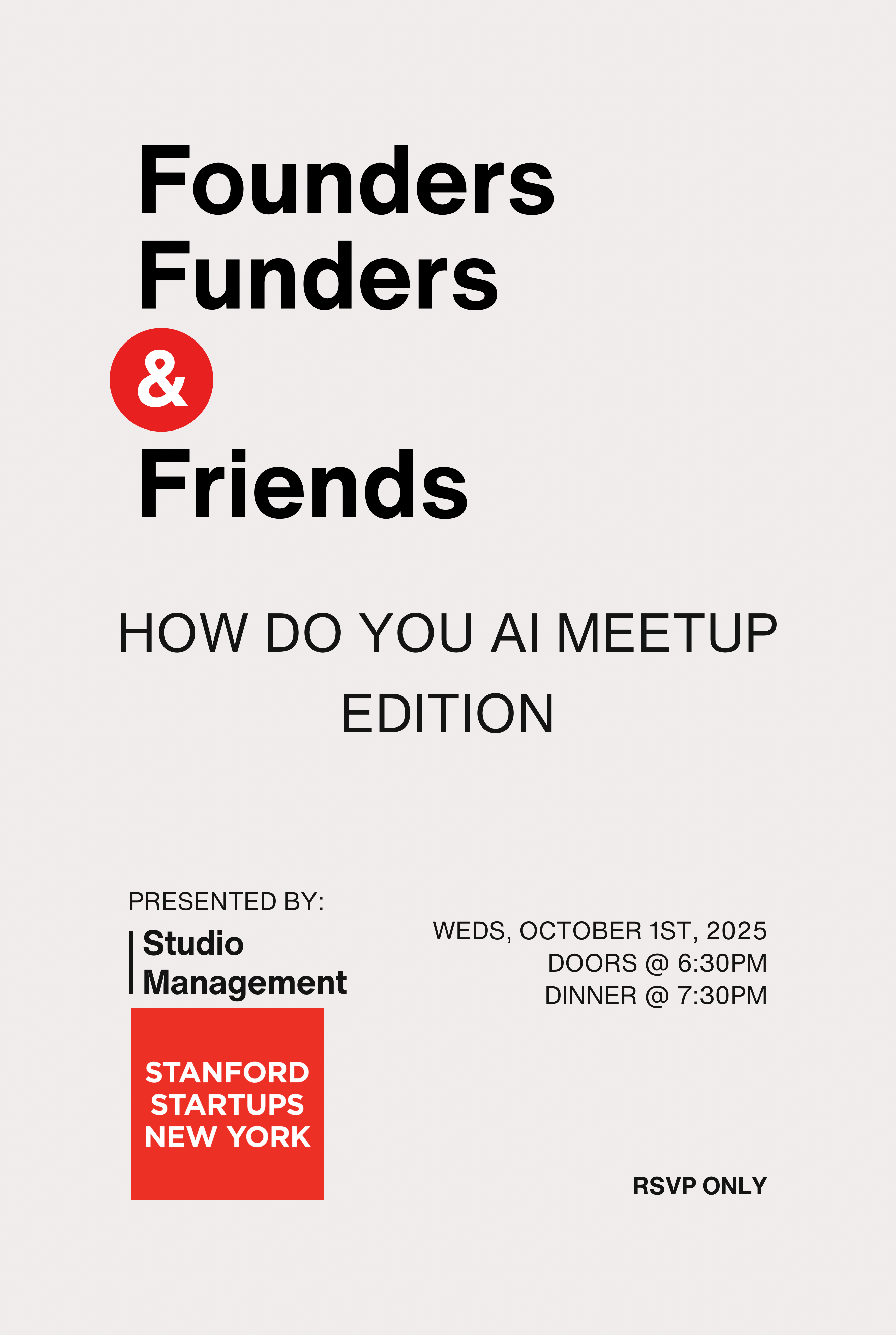 Welcome to our special How Do You AI meetup edition of Founders, Funders, & Friends hosted by Studio Management, in partnership with Stanford Startups New York 🗽