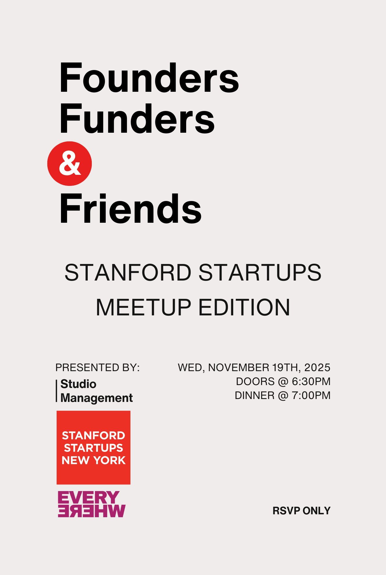 Welcome to our special How Do You AI meetup edition of Founders, Funders, & Friends hosted by Studio Management, in partnership with Stanford Startups New York and Everywhere Ventures 🗽